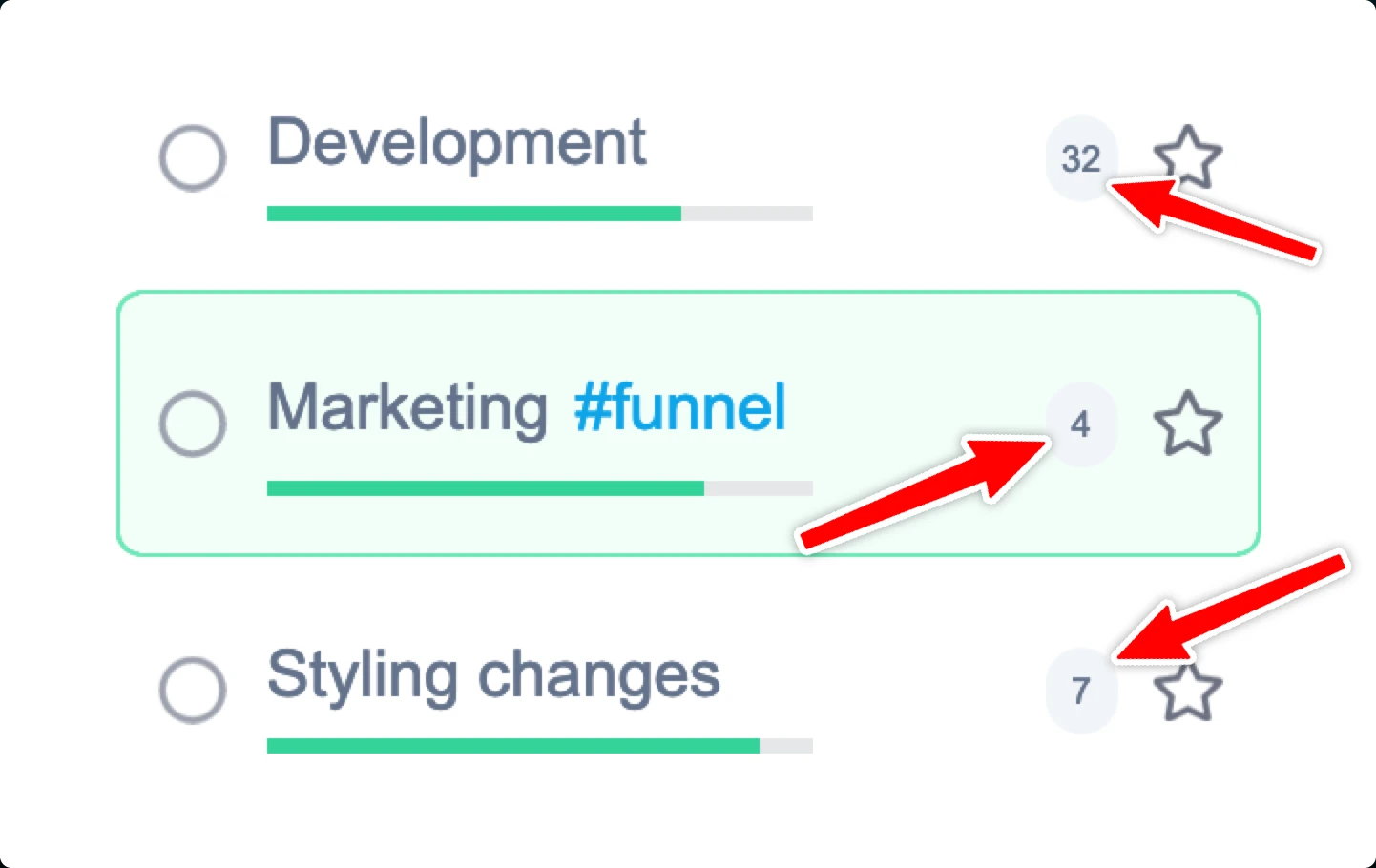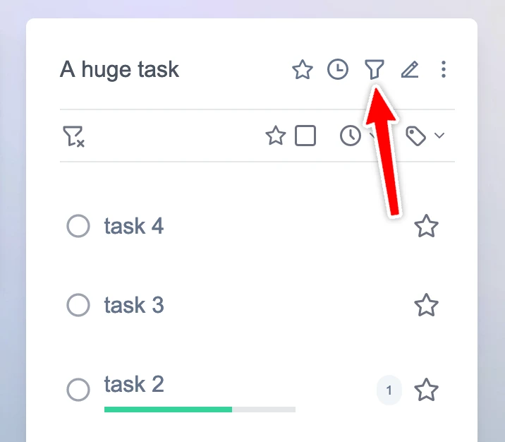 Filtering is a powerful way to narrow down a long list of tasks. You can filter by favourites, due dates, and tags.