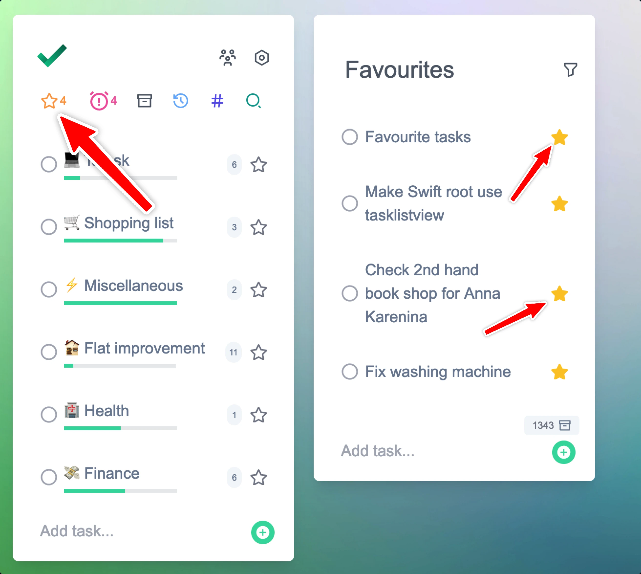 Favouriting tasks