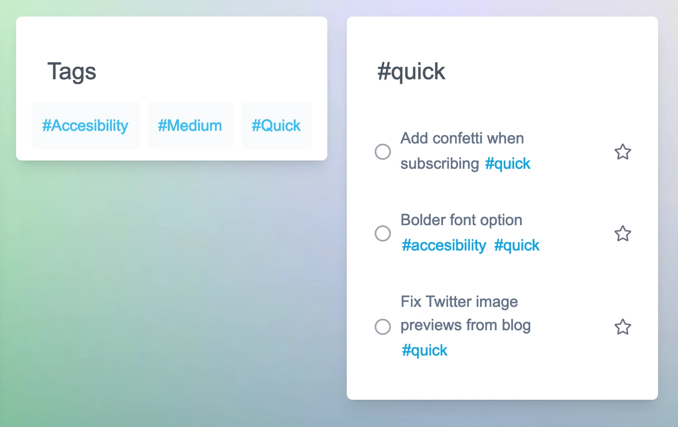 Over time your list of tags will grow and Tatask will begin to autosuggest tags for you as soon as you've typed a '#'. This can be really helpful to tag tasks quickly.